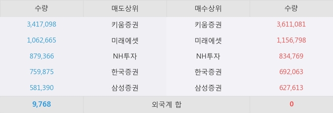 거래원 동향은 미래에셋, NH투자, 삼성증권 등이 매수 상위 목록에 나타나고 있다.