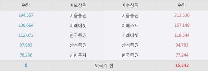 거래원 동향은 미래에셋, 삼성증권 등이 매수 상위 목록에 나타나고 있다.