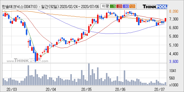 한솔테크닉스의 2019년 매출액은 전년대비 15.5% 늘어난 9722억원이고, 영업이익 또한 전년대비 63.7% 늘어난 255억원을 기록했다. 이 회사의 매출액 증감률과 영업이익 증감률은 각각 코스피 상위 19%, 상위 23%에 해당된다.