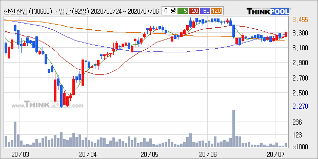[그래프]한전산업 일봉 차트