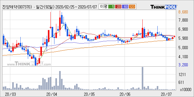 진양제약의 2019년 매출액은 전년대비 1.0% 늘어난 474억원이고, 영업이익은 적자전환해서 -2억원을 기록했다. 이 회사의 매출액 증감률과 영업이익 증감률은 각각 코스닥 하위 42%, 하위 15%에 해당된다.