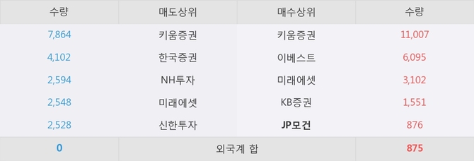 거래원 동향은 JP모건, 미래에셋이 매수 상위 목록에 나타나고 있다.