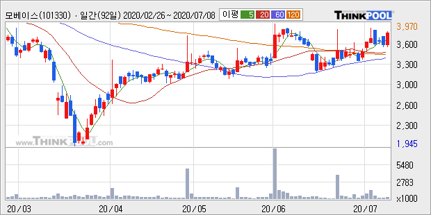 모베이스의 2019년 매출액은 전년대비 73.9% 늘어난 6525억원이고, 영업이익 또한 전년대비 38.6% 늘어난 320억원을 기록했다. 이 회사의 매출액 증감률과 영업이익 증감률은 각각 코스닥 상위 5%, 상위 32%에 해당된다.