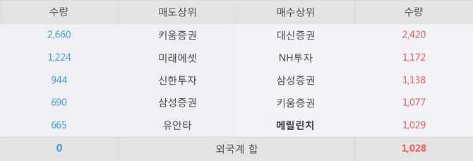 거래원 동향은 메릴린치, NH투자, 삼성증권 등이 매수 상위 목록에 나타나고 있다.