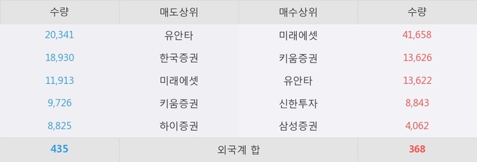 거래원 동향은 미래에셋, 삼성증권 등이 매수 상위 목록에 나타나고 있다.