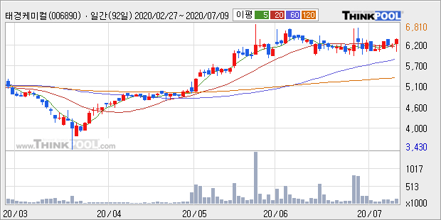 태경케미컬의 2019년 매출액은 418억으로 전년대비 -11.8% 하락했고, 영업이익 역시 12억으로 전년대비 -62.3% 하락했다. 이 회사의 매출액 증감률과 영업이익 증감률은 각각 코스피 하위 12%, 하위 18%에 해당된다.