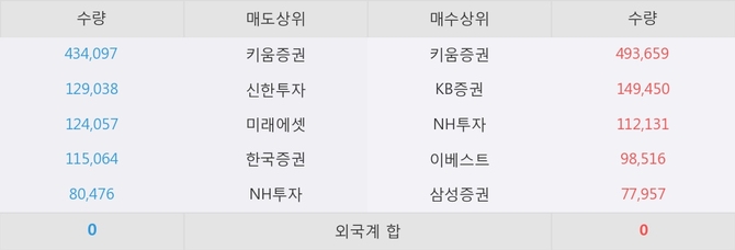 아직까지 외국계 증권사 창구를 통한 매매는 발생하지 않고 있다. 그리고 이 시간 KB증권이 매수창구상위에 올라있는 종목은 이 종목 이외에도 신풍제약우, 화성산업 등이 있다.