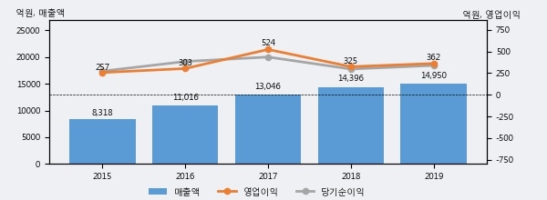최근 3년간의 실적을 살펴보면 안정적 성장세를 보이고 있다. 최근 3년간 매출로 볼 때 매년 꾸준히 증가하고 있다. 다만 최근에 그 증가폭이 다소 감소하고 있다.