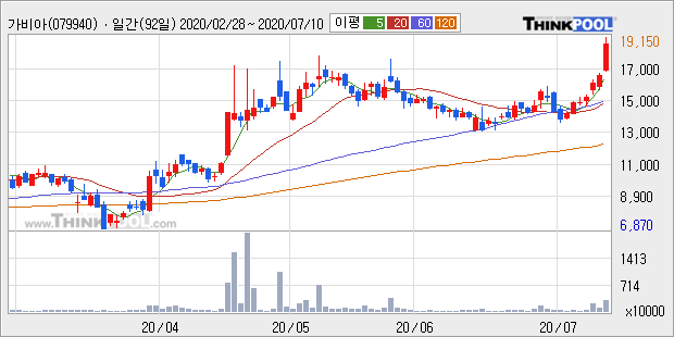 가비아의 2019년 매출액은 전년대비 15.2% 늘어난 1483억원이고, 영업이익 또한 전년대비 30.5% 늘어난 237억원을 기록했다. 이 회사의 매출액 증감률과 영업이익 증감률은 각각 코스닥 상위 31%, 상위 35%에 해당된다.