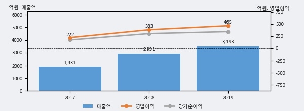 최근 실적을 살펴보면 2019년 매출액이 최근 3년 중 가장 높은 실적을 기록했음을 알 수 있다. 이전 최고 실적이었던 2018년 보다도 19.2%(562억 1천만원) 늘어난 것으로 나타났다.