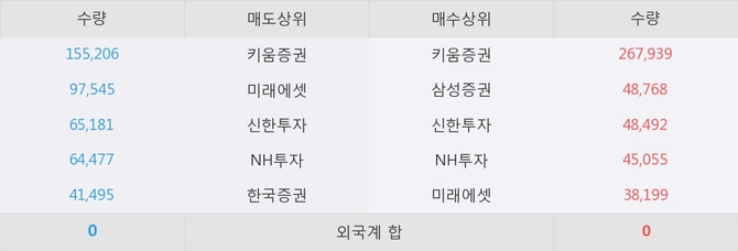 거래원 동향은 삼성증권, NH투자, 미래에셋 등이 매수 상위 목록에 나타나고 있다.