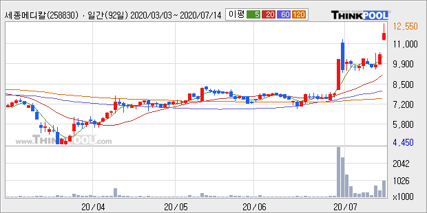 세종메디칼은 2019년 매출액 162억원과 영업이익 38억원을 기록했다. 전년대비 매출은 9.4%, 영업이익은 17.5% 각각 상승했다. 이 회사의 매출액 증감률과 영업이익 증감률은 각각 코스닥 상위 41%, 상위 40%에 해당된다.