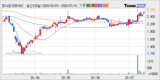 정다운의 2019년 매출액은 1258억으로 전년대비 19.3% 상승했고, 영업이익은 32억으로 전년대비 -74.7% 하락했다. 이 회사의 매출액 증감률과 영업이익 증감률은 각각 코스닥 상위 25%, 하위 21%에 해당된다.
