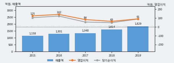 최근 3년간의 실적을 살펴보면 안정적 성장세를 보이고 있다. 최근 3년간 매출로 볼 때 매년 꾸준히 증가하고 있다. 다만 최근에 그 증가폭이 다소 감소하고 있다.
