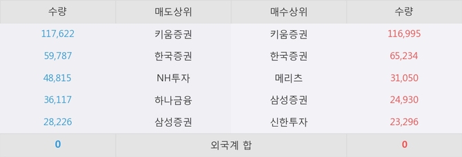 아직까지 외국계 증권사 창구를 통한 매매는 발생하지 않고 있다. 그리고 이 시간 한국증권이 매수창구상위에 올라있는 종목은 이 종목 이외에도 TIGER 200 경기소비재, KINDEX 일본TOPIX인버스(합성 H) 등이 있다.