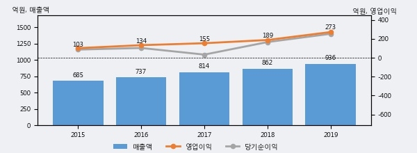 최근 3년간의 실적을 살펴보면 안정적 성장세를 보이고 있다. 최근 3년간 매출로 볼 때 매년 꾸준히 증가하고 있고 그 증가폭도 확대되고 있다.