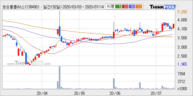 일봉 차트의 모습은 현재 단기·중기 이평선이 정배열 상태로 전형적인 상승세를 보이고 있다. 이 종목의 차트에서 최근에 주가 5MA 상향돌파 등을 확인할 수 있다