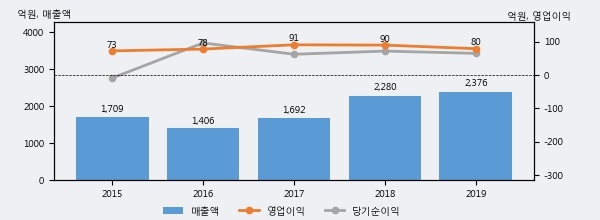 최근 3년간의 실적을 살펴보면 안정적 성장세를 보이고 있다. 최근 3년간 매출로 볼 때 매년 증가하고 있다. 다만 최근에 그 증가폭이 다소 감소하고 있다.