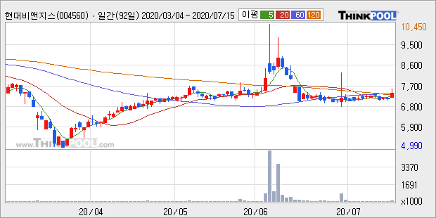 현대비앤지스틸의 2019년 매출액은 전년대비 2.9% 늘어난 7332억원이고, 영업이익 또한 전년대비 4.2% 늘어난 365억원을 기록했다. 이 회사의 매출액 증감률과 영업이익 증감률은 각각 코스피 상위 46%, 상위 50%에 해당된다.