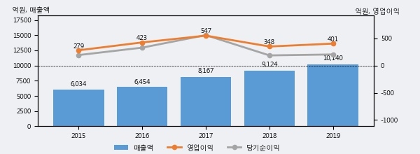 최근 3년간의 실적을 살펴보면 안정적 성장세를 보이고 있다. 최근 3년간 매출로 볼 때 매년 꾸준히 증가하고 있다. 다만 최근에 그 증가폭이 다소 감소하고 있다.