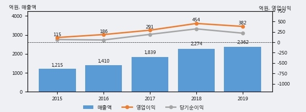 최근 3년간의 실적을 살펴보면 안정적 성장세를 보이고 있다. 최근 3년간 매출로 볼 때 매년 꾸준히 증가하고 있다. 다만 최근에 그 증가폭이 다소 감소하고 있다.