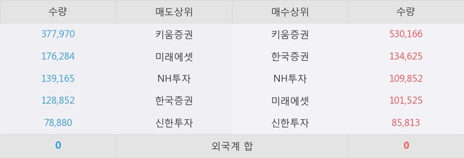 아직까지 외국계 증권사 창구를 통한 매매는 발생하지 않고 있다. 그리고 이 시간 한국증권이 매수창구상위에 올라있는 종목은 이 종목 이외에도 씨앤지하이테크, 우리산업 등이 있다.