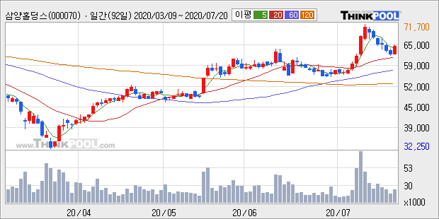 삼양홀딩스는 2019년 매출액 2조 4886억원과 영업이익 794억원을 기록했다. 전년대비 매출은 -2.9%, 영업이익은 -42.7% 각각 하락했다. 이 회사의 매출액 증감률과 영업이익 증감률은 각각 코스피 하위 33%, 하위 24%에 해당된다.