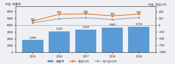 최근 3년간의 실적을 살펴보면 안정적 성장세를 보이고 있다. 최근 3년간 매출로 볼 때 매년 꾸준히 증가하고 있다. 다만 최근에 그 증가폭이 다소 감소하고 있다.