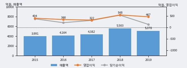 아이디스홀딩스는 2019년 매출액 5078억원과 영업이익 467억원을 기록했다. 전년대비 매출은 -8.7%, 영업이익은 -14.8% 각각 하락했다. 이 회사의 매출액 증감률과 영업이익 증감률은 각각 코스닥 하위 25%, 하위 44%에 해당된다.