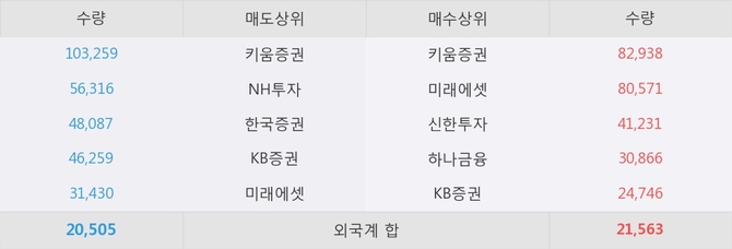 거래원 동향은 미래에셋, 하나금융 등이 매수 상위 목록에 나타나고 있다.