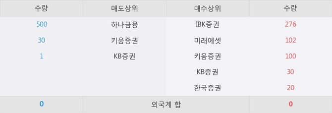이 시각 주요 거래원은 미래에셋, IBK증권, 키움증권 등이 매수 상위 창구에 자리하고 있다.