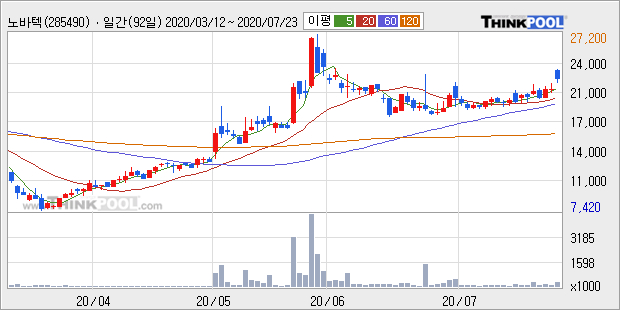 노바텍은 2019년 매출액 261억원과 영업이익 55억원을 기록했다. 전년대비 매출은 1.0% 상승했고, 영업이익은 -17.2% 하락했다. 이 회사의 매출액 증감률과 영업이익 증감률은 각각 코스닥 하위 41%, 하위 42%에 해당된다.