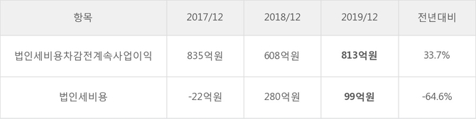 대웅의 지난 3년 동안 법인세 납부액 추이를 보면 2018년에는 증가했으나, 작년에는 99억원으로 감소했다.