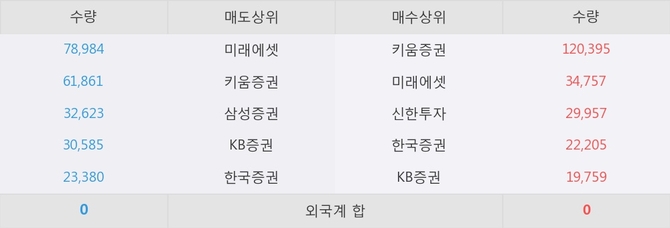 이 시각 주요 거래원은 미래에셋, 키움증권, 신한투자 등이 매수 상위 창구에 자리하고 있다.