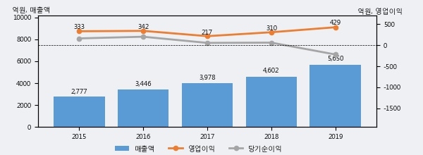 최근 3년간의 실적을 살펴보면 안정적 성장세를 보이고 있다. 최근 3년간 매출로 볼 때 매년 꾸준히 증가하고 있고 그 증가폭도 확대되고 있다.