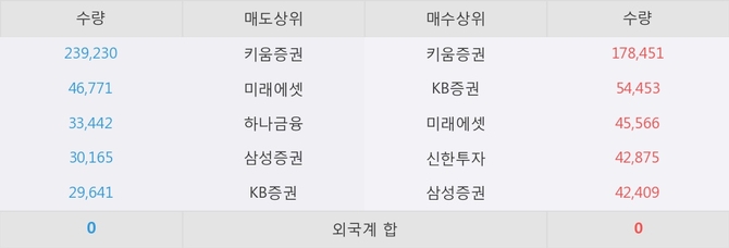 거래원 동향은 미래에셋, 하나금융, 삼성증권 등이 매도 상위 목록에 나타나고 있다.