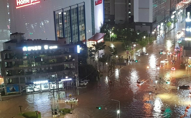 특히 시간당 최대 80㎜를 넘는 폭우에 만조시간(오후 10시 32분)까지 겹쳐 침수 피해가 컸다.