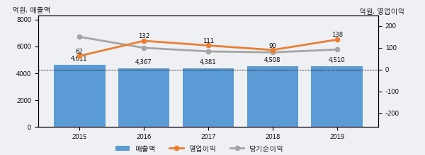 최근 3년간의 실적을 살펴보면 안정적 성장세를 보이고 있다. 최근 3년간 매출로 볼 때 매년 증가하고 있다. 다만 최근에 그 증가폭이 다소 감소하고 있다.