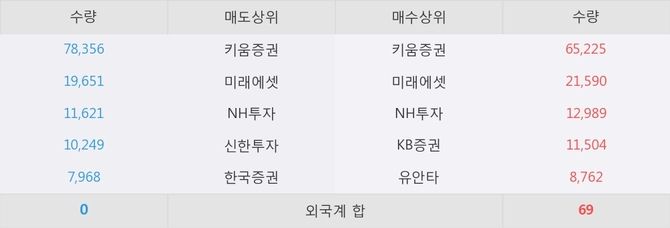 거래원 동향은 미래에셋, NH투자 등이 매수 상위 목록에 나타나고 있다.