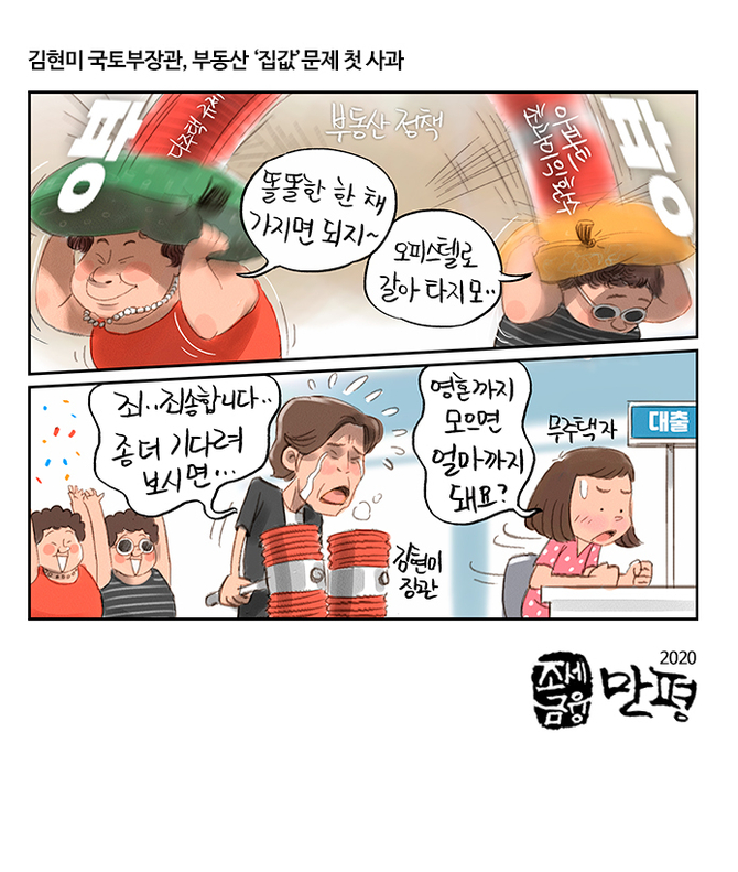 [조세금융만평]김현미 국토부장관, 부동산 '집값' 문제 사과 의미는?