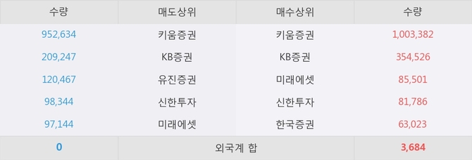이 시각 주요 거래원은 미래에셋, 키움증권, KB증권 등이 매수 상위 창구에 자리하고 있다.