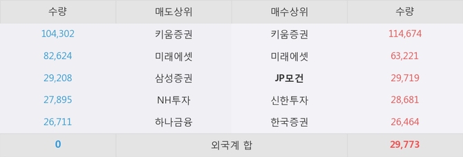 거래원 동향은 JP모건, 미래에셋이 매수 상위 목록에 나타나고 있다.