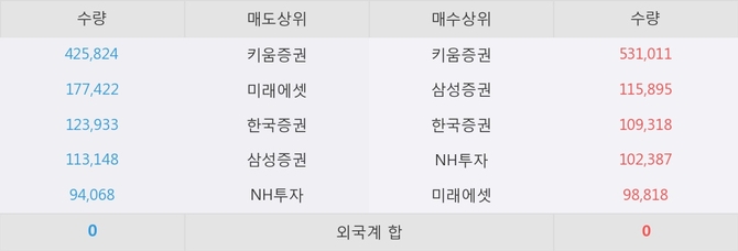 거래원 동향은 삼성증권, NH투자, 미래에셋 등이 매수 상위 목록에 나타나고 있다.