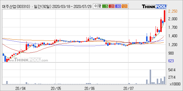 추세선으로 보면 현재 단기·중기 이평선이 정배열 상태로 전형적인 상승세를 보이고 있다. 이 종목의 차트에서 최근에 최근 5일 매물대 돌파, 최근 60일 매물대 돌파 등을 확인할 수 있다