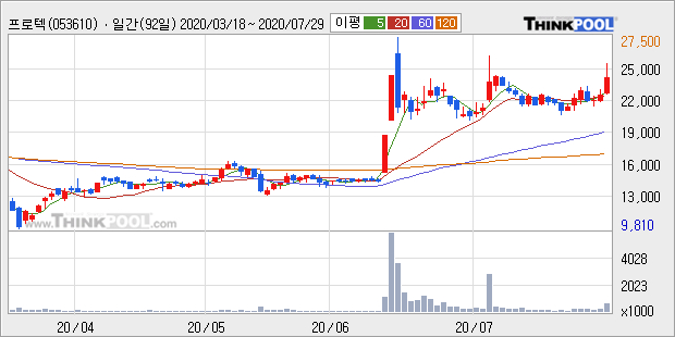 프로텍은 2019년 매출액 1798억원과 영업이익 460억원을 기록했다. 전년대비 매출은 16.7%, 영업이익은 43.2% 각각 상승했다. 이 회사의 매출액 증감률과 영업이익 증감률은 각각 코스닥 상위 29%, 상위 30%에 해당된다.