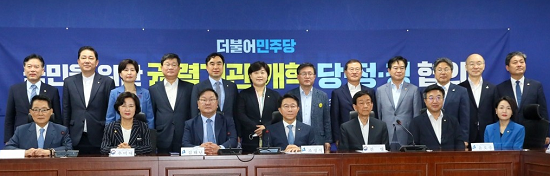 더불어민주당과 정부, 청와대는 30일 오전 국회에서 협의회를 열고 권력기관 개혁 완수를 한목소리로 강조했다.