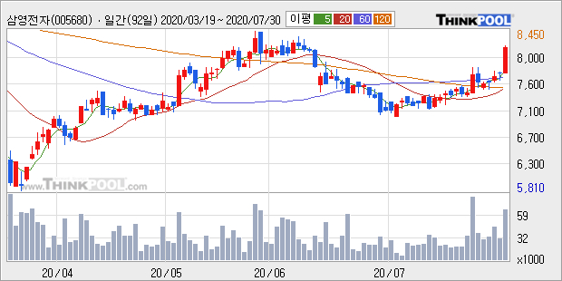 삼영전자의 2019년 매출액은 2010억으로 전년대비 -19.5% 하락했고, 영업이익 역시 46억으로 전년대비 -64.6% 하락했다. 이 회사의 매출액 증감률과 영업이익 증감률은 각각 코스피 하위 6%, 하위 17%에 해당된다.