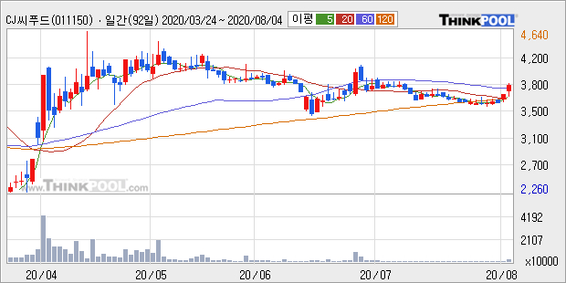 CJ씨푸드의 2019년 매출액은 전년대비 -1.0% 줄어든 1492억원이고, 영업이익 역시 전년대비 -10.4% 줄어든 37억원을 기록했다. 이 회사의 매출액 증감률과 영업이익 증감률은 각각 코스피 하위 40%, 하위 42%에 해당된다.