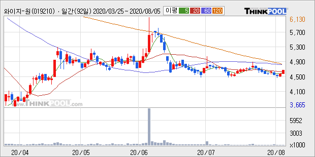 [그래프]와이지-원 일봉 차트