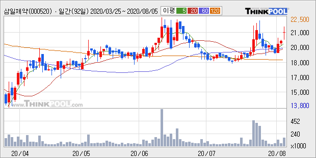 삼일제약의 2019년 매출액은 1211억으로 전년대비 28.0% 상승했고, 영업이익은 48억으로 흑자전환했다. 이 회사의 매출액 증감률과 영업이익 증감률은 각각 코스피 상위 10%, 상위 8%에 해당된다.